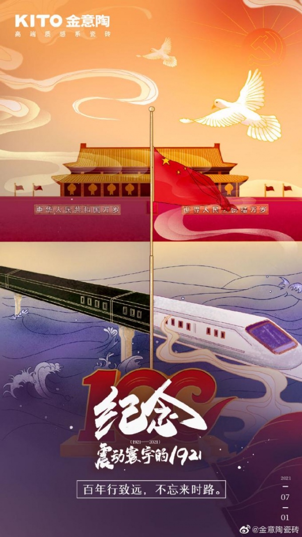 匠心筑梦,共赴未来,金意陶17年来始终坚持品质,只为给您更质感更美好的生活。在生活中发现艺术,金意陶至今已推出全抛釉、糖果釉、电热瓷砖等多个系列,满足多类客户的多种装修风格。感恩一路有您的支持与陪伴,让金意陶请您免费看《1921》,燃起百年前的青春烈火,共赴未来!