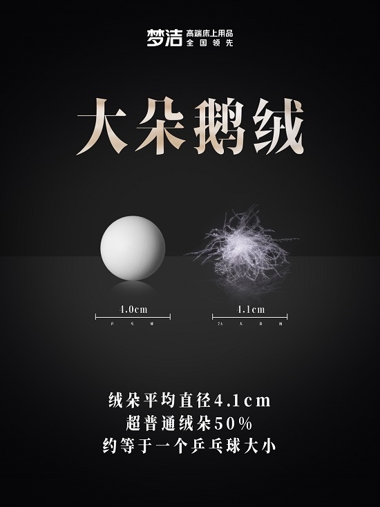 秋冬必不可少的,当属极为柔软且保暖的羽绒被了。近日,梦洁携推出首款7A羽绒被。此前行业内羽绒最高级别仅5A,而梦洁7A羽绒绒朵大、绒质好、纯度高、保暖性极佳,获得广检集团权威认证。梦洁精选7A羽绒原料,绒朵平均直径达到4.1cm,比普通绒朵大50%,比乒乓球直径4cm更大;其蓬松度可达1000,超国际标准1.5倍,不仅大大提升羽绒被的保暖性能,更使其触感轻盈柔软。同时,其经过34道净绒工艺打造而成,清洁度达1500+,高于国家标准3倍,大大提升睡眠的舒适性和安全性。梦洁7A羽绒被的卓越品质,赢得了消费者的信赖与喜爱。