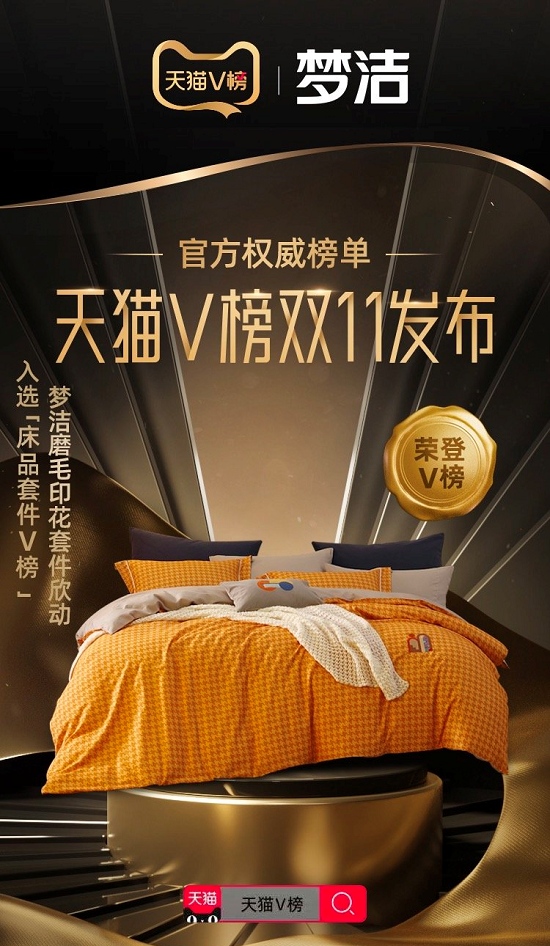 (梦洁磨毛印花套件欣动入选天猫双11床品套件V榜)