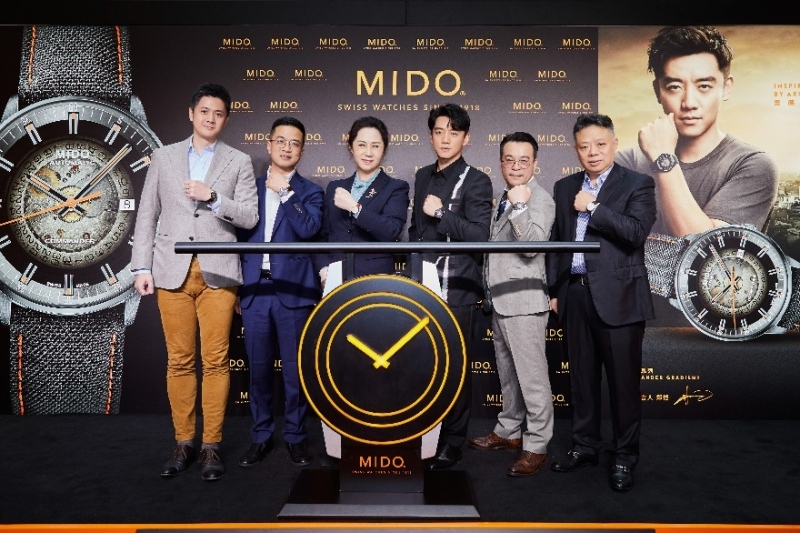 (从左至右:盛时集团总裁助理 谈思渊先生;中央商场集团(股份)有限公司中心店副总经理 郭叶晓先生;中央商场集团(股份)有限公司中心店总经理 董向红女士;瑞士美度表品牌代言人 郑恺先生; 瑞士美度表中国区副总裁 张利民先生;南京顺序钟表有限公司总经理 陈纯先生。)