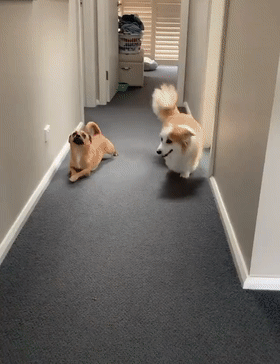 继有只柯基遭受火伴仿照走路的无情嘲讽后...