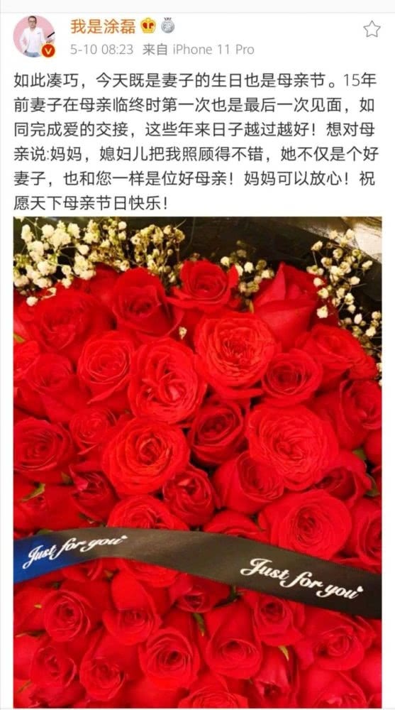 5月10日是母亲节,一大早,爱情导师涂磊就在网上发文表达妻子,说今日很恰巧,既是母亲节也是自己妻子小丸子的生日,涂磊晒出了一大束送给小丸子的红玫瑰,在今日如此特其他日子里收到老公送的这么美丽的花朵,小丸子心里必定很美好吧。