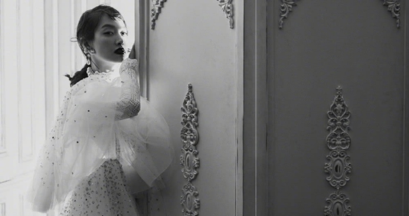 或是手执一束柔嫩的鲜花,神态满意。贵气且高雅的黑色短上衣,配上黑色蓬蓬裙,仍旧是翘着脚,细细的绕带小高跟很有少女感。有一种不谙世事的大小姐的感觉。