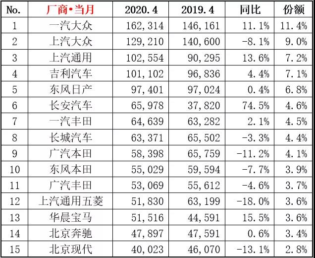 4月归纳销量排名出炉!南北群众仍旧抢先,但两者销量相差甚远;吉祥挤进前五,市占率达7.1%;长安同比大涨75%,逾越长城。