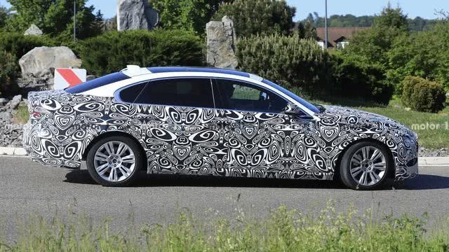 从车身旁边面细长的线条和超长的轴距能够精确的看出,这是一台全新捷豹XF L,据悉现款车型长达3100mm的轴距将被保存下来,而内饰做工以及奢华程度也得到了某些特定的程度的提高,这也是其作为二线奢华品牌叫板奔跑E级和奥迪A6L的优势地点。