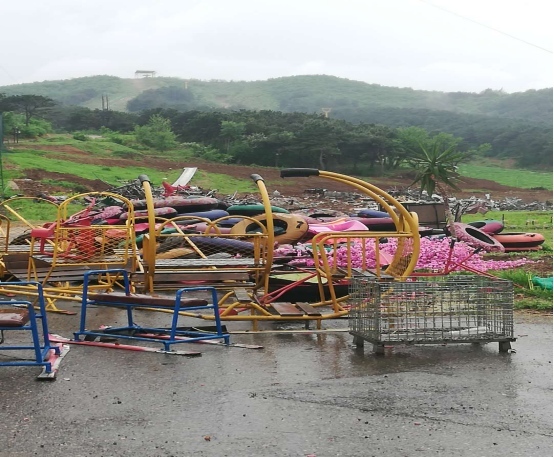 要求员工继续工作,各个部门落实损坏程度,尽可能的恢复原始景观,各个出入道路及电业紧急抢修。