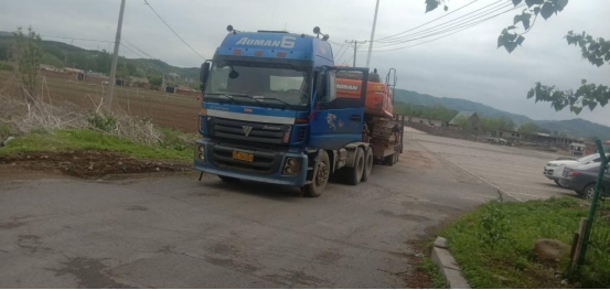 此男子姓王,开着拖车,拖车上面有钩机,还有一辆翻斗车。