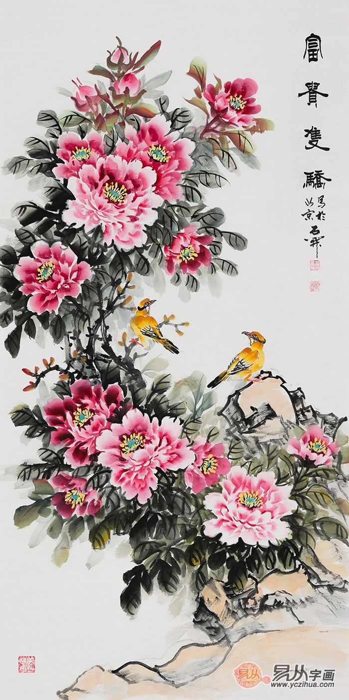 翻开家门,迎门扑来的是空荡荡玄关墙,是不是觉得少了些什么,如若在玄关墙上增加一幅挂画,作用立马就不相同了呢。富有牡丹,花开绚烂,奇石古雅,两只美丽的黄鹂鸟歇息奇石上,似在悄然对话,较为讨人喜欢。停步画前,倾听鸟儿花间细语,品尝浓浓春意,适可而止的装点,既提高了大门口的颜值,又让家人天天得到富有吉利的祝愿。