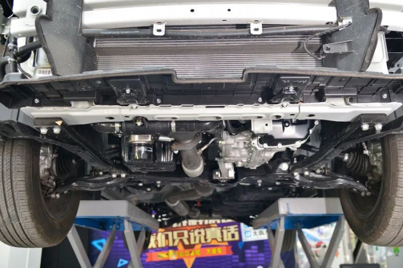 排气管方位相对靠下,并没有安顿在凹槽中,明显凹槽是为了四驱体系传动轴预留的,但CS75(参数|图片) PLUS全系并没有四驱车型,阐明未来或许会有或者是参照了带四驱体系的底盘。别的,排气隔热做得也不到位,只要部分区域有相应的隔热办法。